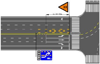 (1)開口端至停止線距離應結合路口導向車道線長度,建議長度30~50m。