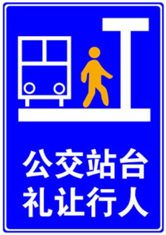 為加強(qiáng)提醒非機(jī)動(dòng)車注意前方公交車輛下客情況,提前做好減速慢行準(zhǔn)備,可酌情設(shè)置指示標(biāo)志,版面可參考下圖所示,若夜晚,周圍光照環(huán)境不佳,建議采用主動(dòng)發(fā)光標(biāo)志,不僅加強(qiáng)指示的醒目性,同時(shí)也照顧自身無(wú)光照條件的非機(jī)動(dòng)車騎乘人。