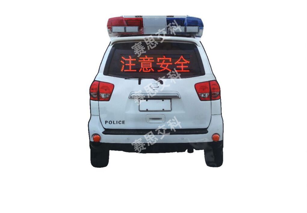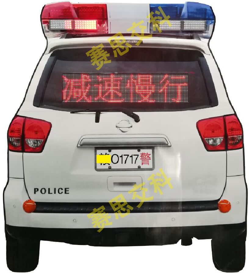 2、基本說明:標志面層為仿真等比例警車車尾UV噴繪圖案,面層采用鋁質板材,標志圖案、字樣輪廓嵌入紅色高倍LED發光管,上置紅、藍暴閃燈,下方左右各置全紅剎車燈,中間“車窗”設置發光警示標語,整體結構合理,用材精致。