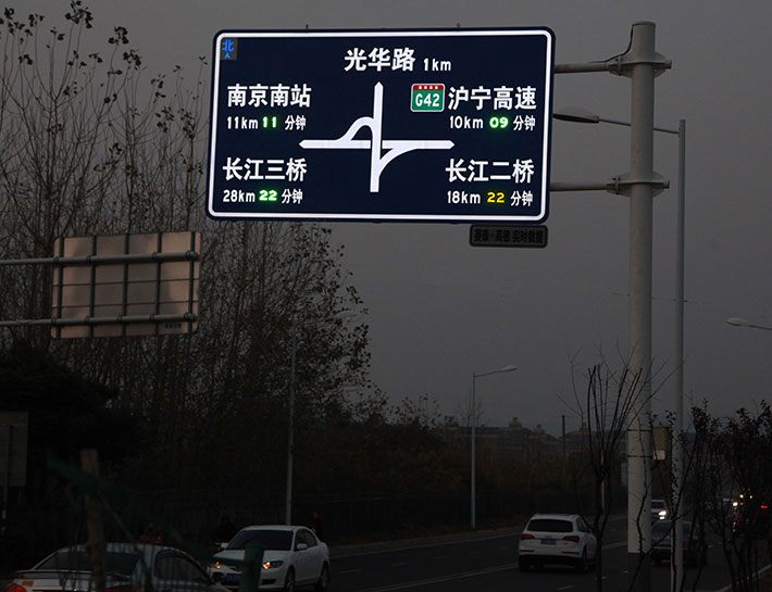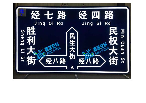 1、標(biāo)志發(fā)光路名文字部分采用半透面板式主動(dòng)發(fā)光標(biāo)志技術(shù)工藝。