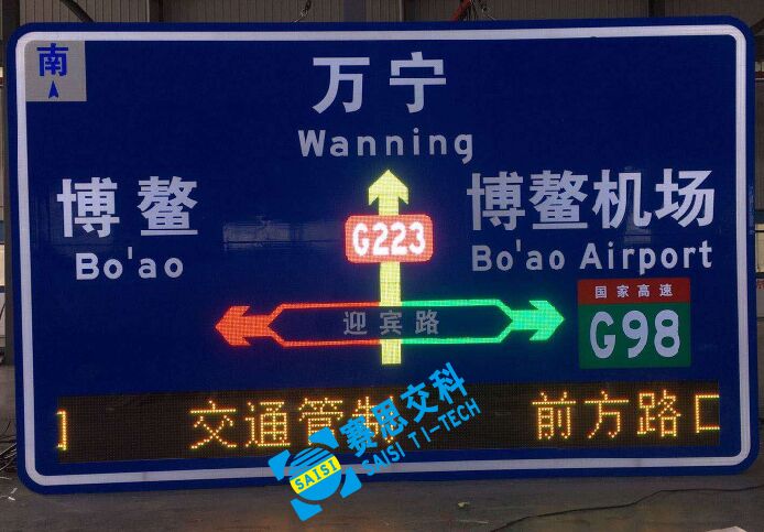 2、標(biāo)志版面整體采用主動(dòng)發(fā)光技術(shù),路網(wǎng)框體部分嵌入三基色LED光帶誘導(dǎo)屏體。