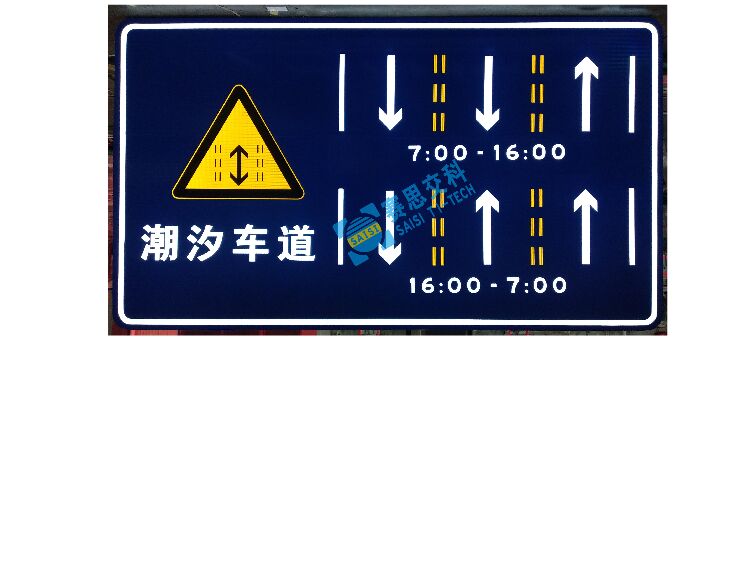 在城市交通中,一些路段經常會出現周期性正、逆方向交通流高峰交替現象,如:某路段,整體為東西方向走向,道路西端為密集辦公區,道路東端為住宅集中區,早高峰時,東側住宅區的上班族早晨開車去西端上班,由東向西交通流密集,反方向則車輛較少;晚高峰時,西側的上班族下班向東段回家,由西向東交通流密集,反方向則車輛較少;為合理優化道路使用率,均衡雙向交通流量分布,優化交通組織,可開辟中央車道做潮汐車道,配置潮汐車道標志,具體技術參數如下: