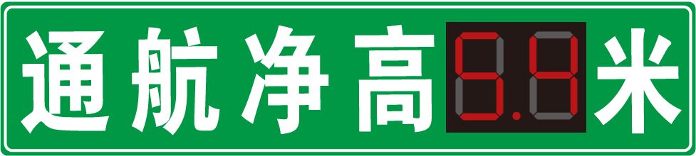 船舶準(zhǔn)備通行橋梁、管道等跨河建筑物時(shí),需提前獲知橋梁底沿與航道水面之間的高度,又稱“航道凈高”,以保證能安全通過橋梁下方航道,各級(jí)航道所必須的通航凈高在國家頒布的通航標(biāo)準(zhǔn)中均有規(guī)定,隨著航道水域出現(xiàn)的“漲潮期”、“枯水期”,航道凈高數(shù)值也是動(dòng)態(tài)變化的,所以作為橋梁設(shè)計(jì)、管養(yǎng)方,為橋梁安裝能動(dòng)態(tài)顯示通航凈高數(shù)值的發(fā)光標(biāo)志牌,能有效保障航道的通行安全,本次設(shè)計(jì)的“通航凈高動(dòng)態(tài)顯示發(fā)光標(biāo)志”(下一:白天效果;下二:夜間效果)。