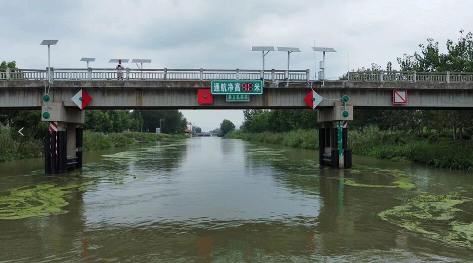 3、數(shù)據(jù)檢測(cè):配置水位檢測(cè)雷達(dá)裝置,實(shí)施檢測(cè)水面凈空數(shù)值,疊加安全富裕高度數(shù)值,采用微控算法程序,實(shí)時(shí)向標(biāo)志版面?zhèn)鬟f凈空數(shù)值,動(dòng)態(tài)顯示。如下圖: