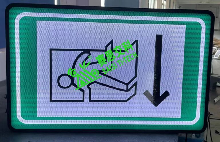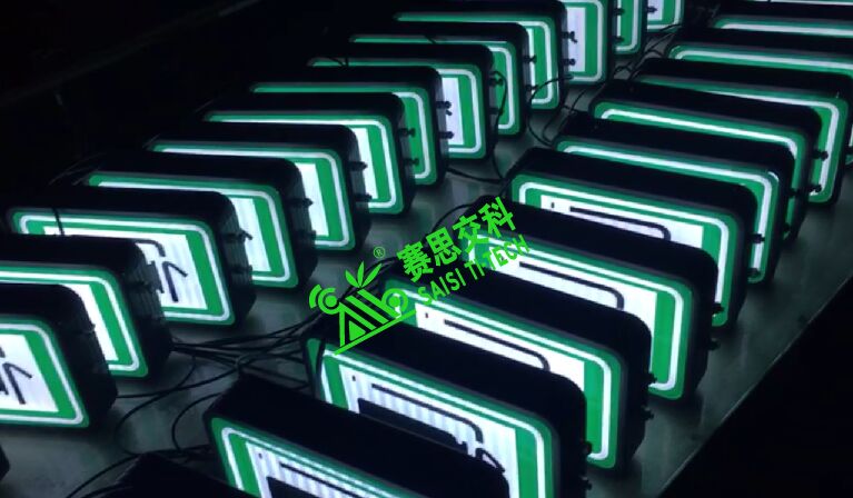 隧道雙面全透電光標(biāo)志,面板采用專用透光材質(zhì);背板采用鋁制板材;抱邊結(jié)構(gòu)采用專用的模具成型鋁制結(jié)構(gòu);面板圖案文字部分,主要分兩種:(1)國(guó)標(biāo)IV類反光膜;(2)UV專用圖案打印(不反光)。其安裝通常采用L型支架架構(gòu),側(cè)裝于隧道內(nèi)壁。光源采用專用內(nèi)置照明超亮燈珠,內(nèi)部投射于標(biāo)志表面,形成發(fā)光效果。