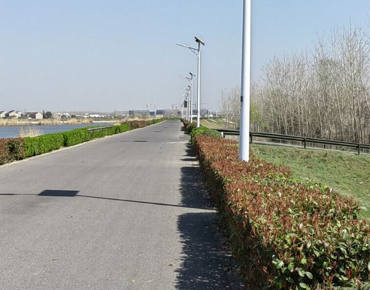 如下圖:前方有一段鄉村路交叉匯入主線,主線兩側卻沒有岔口警告標志;小叉路路寬較窄,幾乎只能容下單車通行,傍晚時常有附近的居民從這條路上河堤散步,等散步完回家時,天色已黑,這條路照明條件不好,如果有車輛從河堤上俯沖下來,下面有人,就會非常危險;且陡坡下來不遠就是池塘,沒有提示標志、沒有防撞護欄。下圖左:右側叉口在主線上被苗圃遮擋,出口無法發現:下圖右:叉口很窄,且向下不遠就是池塘。