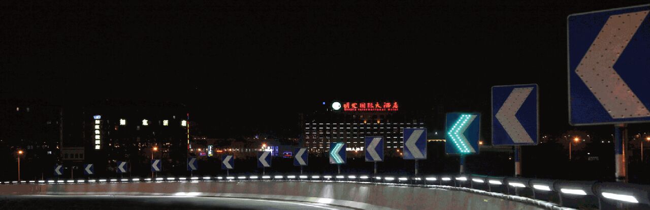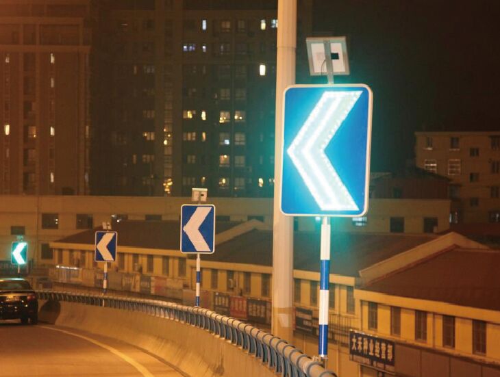 1、在彎道處設(shè)置點陣主動發(fā)光彎道誘導(dǎo)標(biāo)志,采用太陽能供電,無需外接市政電源,通過LED動態(tài)“追逐式”閃爍,有效指示道路線形變化動態(tài)軌跡、保障車輛在彎道行駛的安全性。標(biāo)志采用自動光控技術(shù),不僅具備普通標(biāo)志的逆反射功能,同時,在雨霧霾等惡劣天氣狀況下也具有良好的穿透性,能被遠(yuǎn)距離視認(rèn),降低了曲線路段視認(rèn)性不足所帶來的安全隱患;逆光條件下,強烈陽光照射使人難以看清標(biāo)志信息內(nèi)容,易造成交通事故,主動發(fā)光彎道誘導(dǎo)標(biāo)志起到正面補光的作用,同時,標(biāo)志美觀、方便安裝維修。